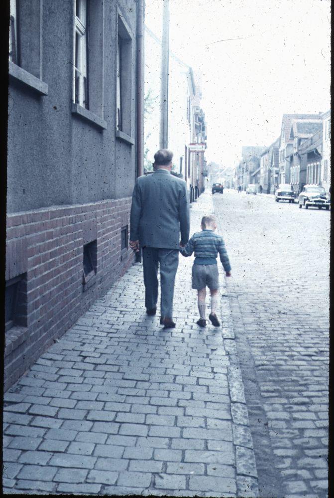 Dieser Abschnitt berichtet eigentlich nichts über mich, jedenfalls nicht direkt. Ich tauche in der ganzen Geschichte fast überhaupt nicht auf, und es ist eigentlich auch keine Geschichte, sondern so etwas wie eine Milieustudie oder ein Schlaglicht auf eine andere Zeit, auf eine Zeit, die in meinem Empfinden für „die gute alte Zeit“ steht, für die Zeit, in der alles eine Ordnung und Beständigkeit zu haben schien, die vermeintlich heile Welt meiner Kindheit. Und wenn ich oben eine Jahreszahl eingesetzt habe, so ist diese Jahreszahl ziemlich willkürlich gewählt. Es war die Zeit der 50er und 60er Jahre. Ich weiß nicht einmal mehr, wann das Ereignis „Gemüsehändler Heiner Hain“ endete, eines Tages war er nicht mehr da. Mir schien das nicht wirklich aufgefallen zu sein, er war kein wesentliches Bestandteil meiner Welt mehr, ich nehme an, dass sein Verschwinden in die Zeit zwischen 1965 und 1970 gefallen sein muss. Doch wer war eigentlich dieser Gemüsehändler?