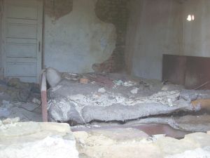hier baut ein einzelner Mann sein Haus neu auf. Es ist erst Anfang