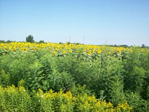 ist inzwischen geerntet, aber die Sonnenblumenfelder stehen