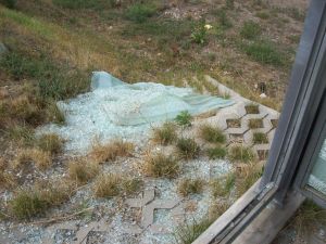 von Vandalen verwüstet, die schattenspendenden Wartehäuschen