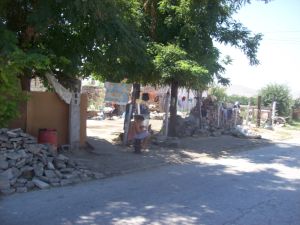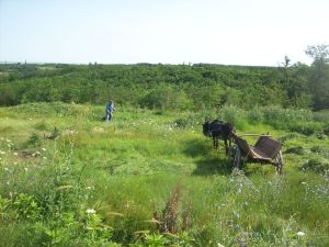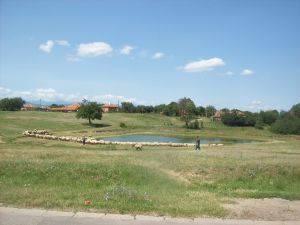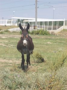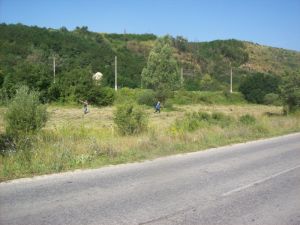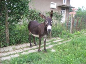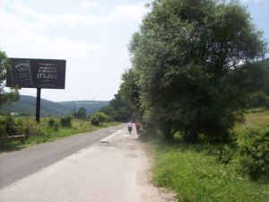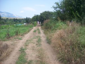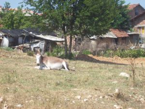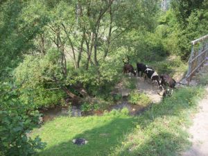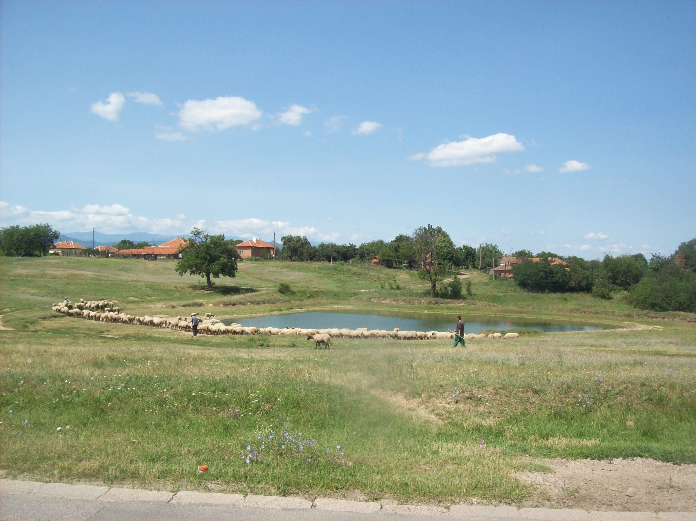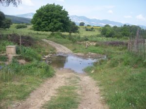 Am Bahnhof von Jabolokvo nahm ich am nächsten Tag meine Pilgerwanderung wieder auf; bei Krum gab es eine Wasserstelle für Mensch (Vordergrund) und Tiere (dahinter), wo ich meine letzten Müsliriegel mit einem Esel teilte. |