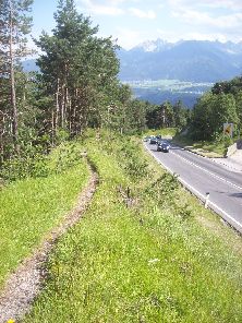 der Pfad teilweise neben der Bundesstraße... ...und teilweise