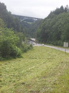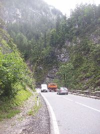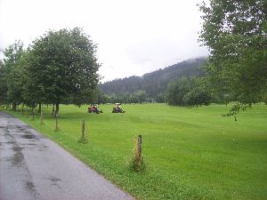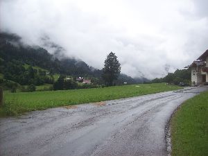 Am nächsten wartete ich zunächst in der Hoffnung, der strömende Regen würde aufhören oder zumindest nachlassen. Als er dies absolut nicht tat, machte ich mich auf den Weg und verließ Feistritz. (Die beiden Bilder wurden bereits tags zuvor gemacht, bevor der große Regen kam.) |