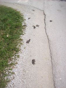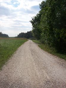 Der nächste Tag führte mich meist entlang einer kleinen und Amphibien daher weniger gefährlichen Straße, die zu Meditationen einlud (rechts), entlang. |