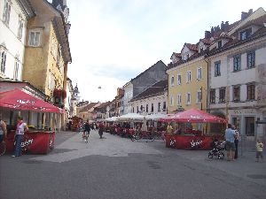 Ljubljana. Ich nehme wegen eines heftigen Gewitterschauers in