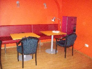 Innenstadt und nahm in dem Hostel links Quartier... ...das am