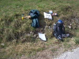 keine Bänke, sodass ich mein Picknick am Wegesrand mache.